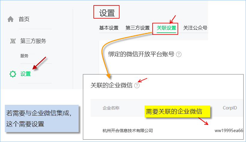 4、設(shè)置(可選,若企業(yè)微信集成的時候需要):