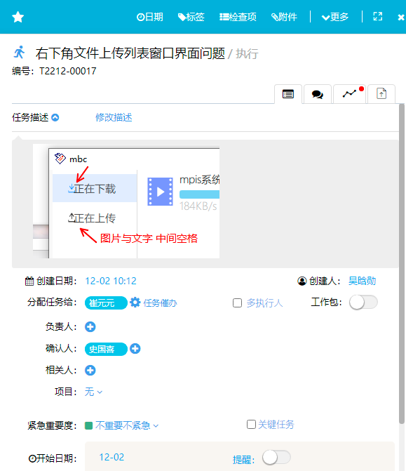 點上圖中的“”頁簽即可顯示任務的動態及交流頁面,如下圖所示: