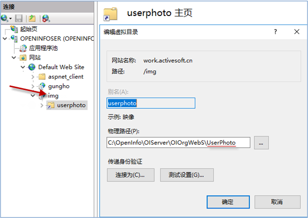 第三步:在img應用下面創(chuàng)建虛擬目錄 userphoto (固定不能改),地址指向org 服務下 userPhoto目錄