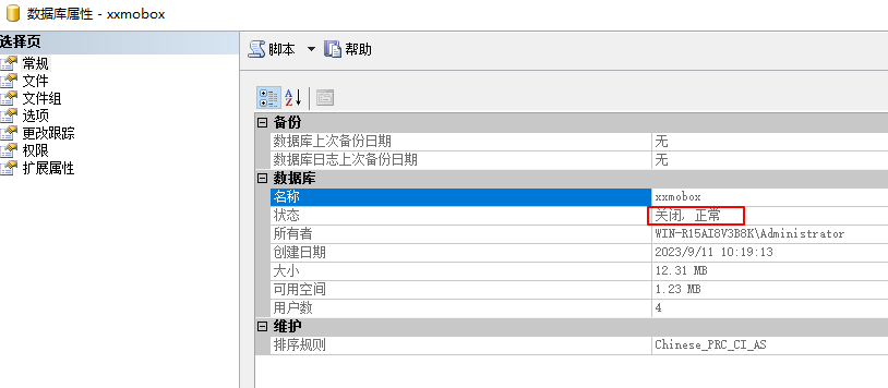 今天遇到一個非常詭異的現(xiàn)象,xxmobox數(shù)據(jù)庫還原后提示成功,但這個數(shù)據(jù)庫無法被dns服務鏈接。經(jīng)過分析發(fā)現(xiàn) xxmobox數(shù)據(jù)庫狀態(tài):關閉,正常