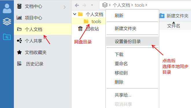 3)設置這個網盤目錄(tools)與本機電腦上指定目錄進行文件同步(本機如:c:\tools)