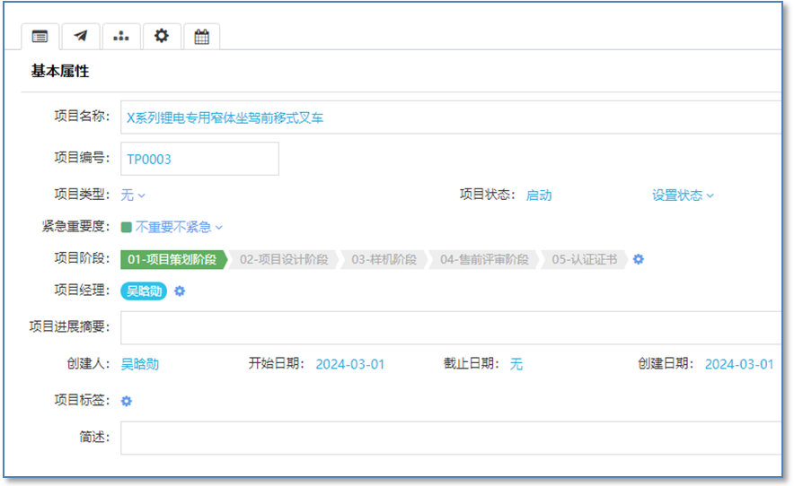 項目階段(可設置當前階段)、項目狀態